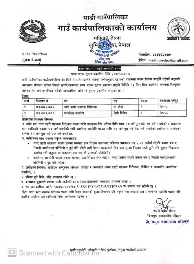 » करार सेवामा पदपूर्ति सम्बन्धी सूचना !