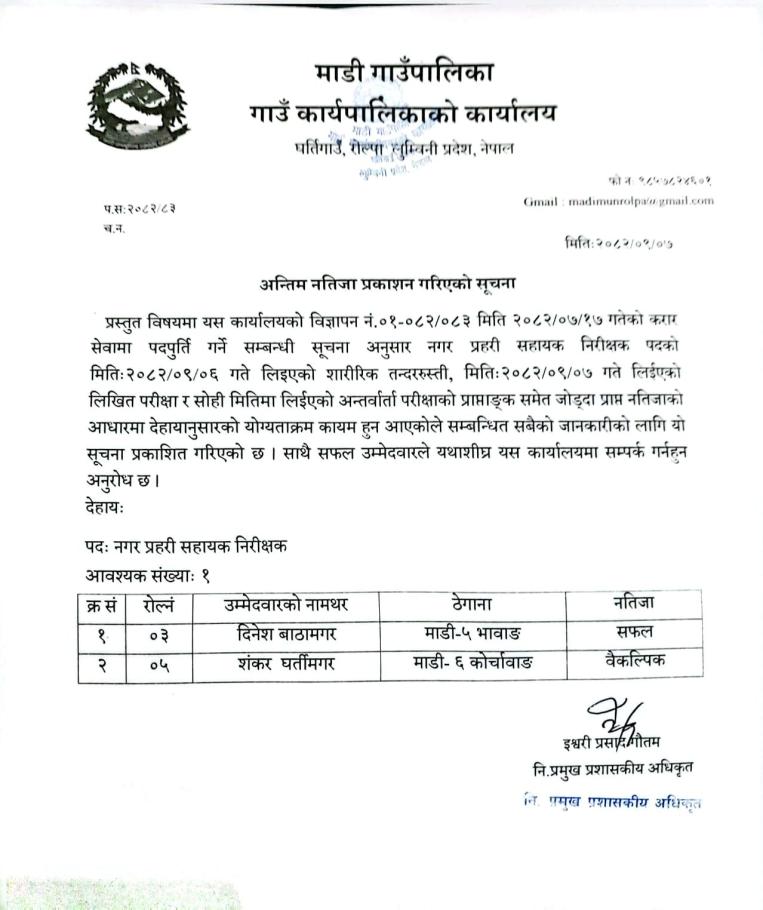 अन्तिम नतिजा प्रकाशन