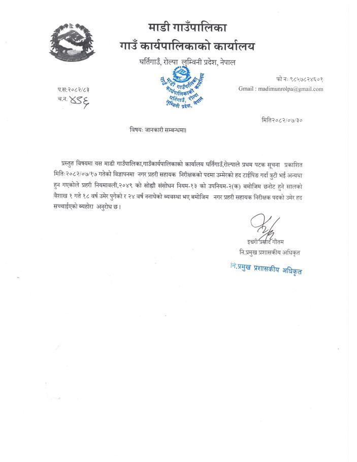 करार सेवामा पदपूर्ति सम्बन्धी सूचना !