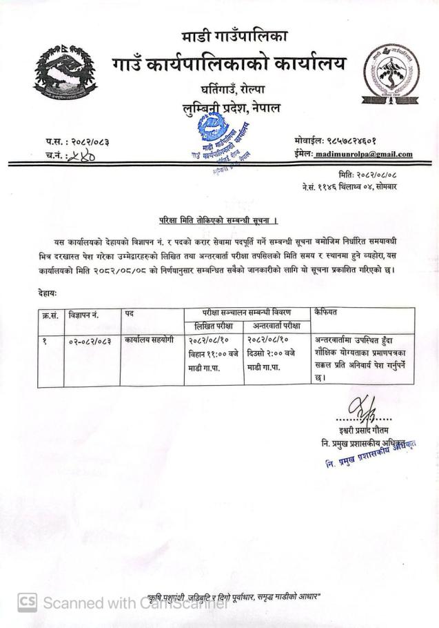 परीक्षा मिति तोकिएको सम्बन्धी सूचना