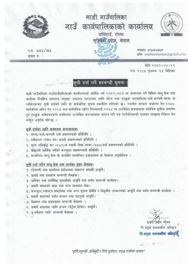सूची दर्ता गर्ने सम्बन्धी सूचना !